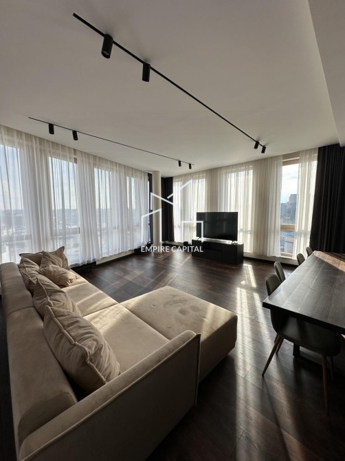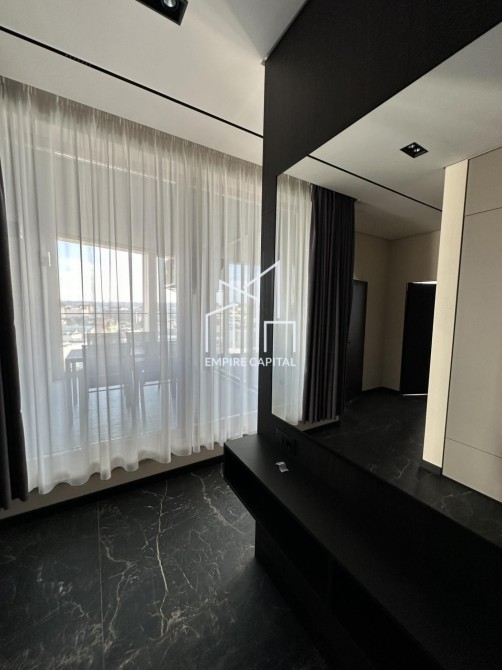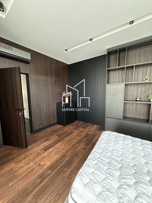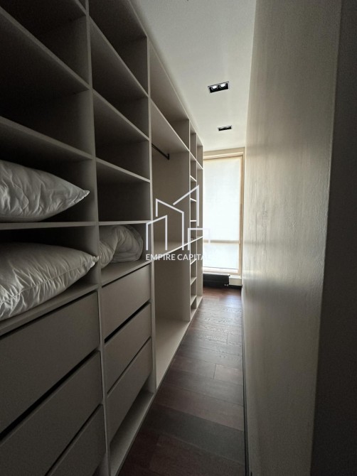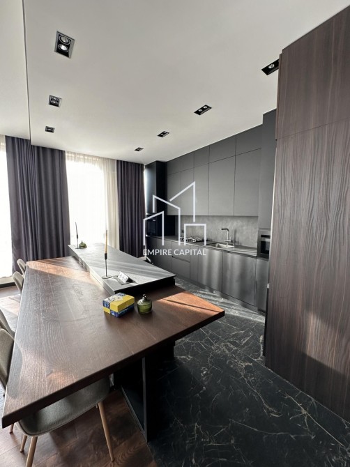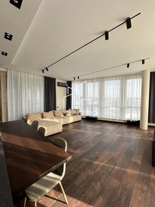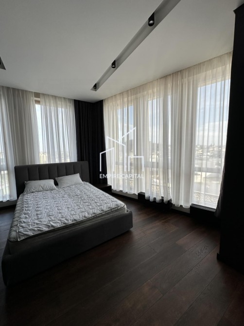 -Площа 126 кв.м. Квартира складається з 2 житлових кімнат, великої кухні студії, двох санвузлів та гардеробної кімнати.