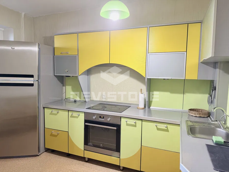 В кімнаті є вихід на просторий балкон, оздоблена диваном, тумбою, кондиціонером. Спальня має ліжко 1600/2000, вмістку шафу, кухня оздоблена всією необхідною технікою: газова плита, духовка, холодильник, пральна машина, мікрохвильова піч, витяжка, кухонний гарнітур, стіл скляний зі стільцями, санвузол окремий, ванна кімната, керамічна раковина, в туалеті встановлений бойлер.