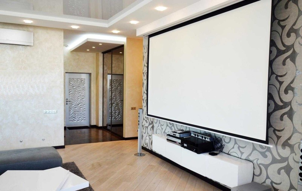 Домашній кінотеатр з проектором і екраном 130, камін, кліматична система Daikin, гігабітний інтернет, система очищення води, багато місць для зберігання, продумане освітлення та розетки по всій квартирі.