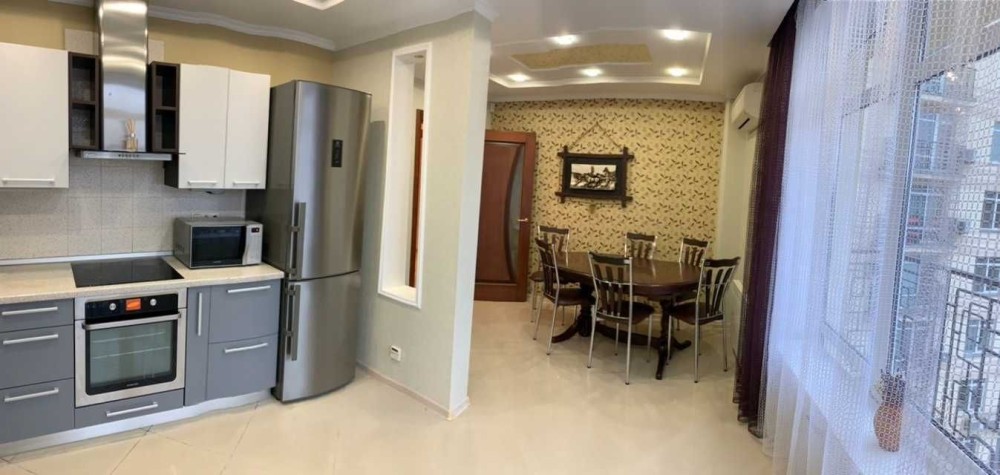 Квартира в новому будинку, кімнати роздільні, капітальний ремонт, укомплектована повністю всіма необхідними стильними меблями, вбудована кухня з вбудованою побутовою технікою: холодильник, варильна поверхня, духовка, три кондиціонери, телевізори, санвузол суміщений, два балкони, гардеродна , закритий двір, парковка , охорона , зручна транспортна розв'язка, метро Шулявська, КПІ 10 хвилин.