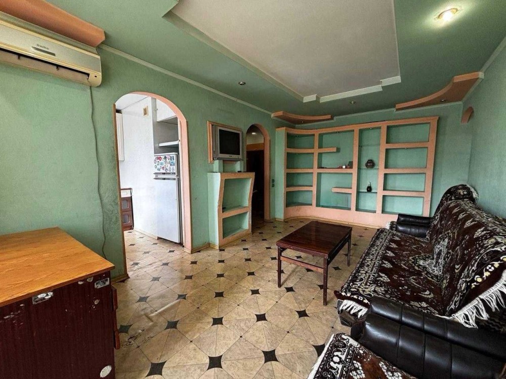 Квартира у задовільному стані, укомлектована деякими меблями та технікою: телевізор, бойлер, газ. плита з духовкою, кондиціонер. € балкон - засклений.