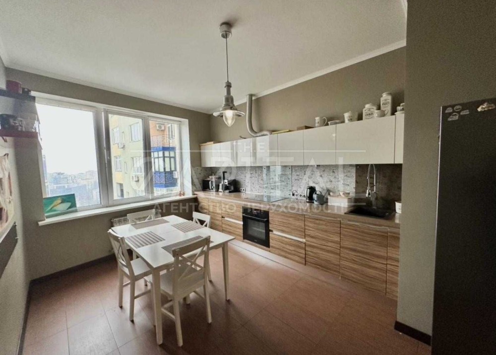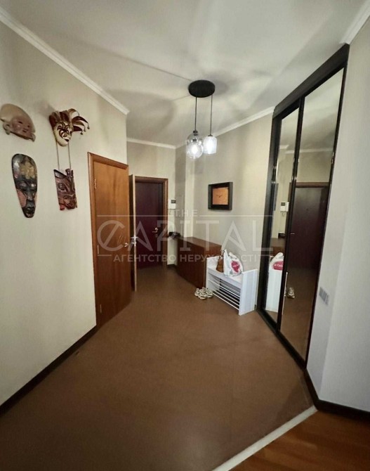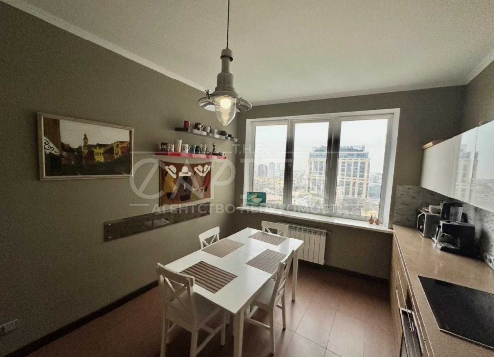 Квартира має панорамний вид на Печерські пагорби, високі стелі близько 3 метрів, що створює відчуття простору та наповненості світлом.