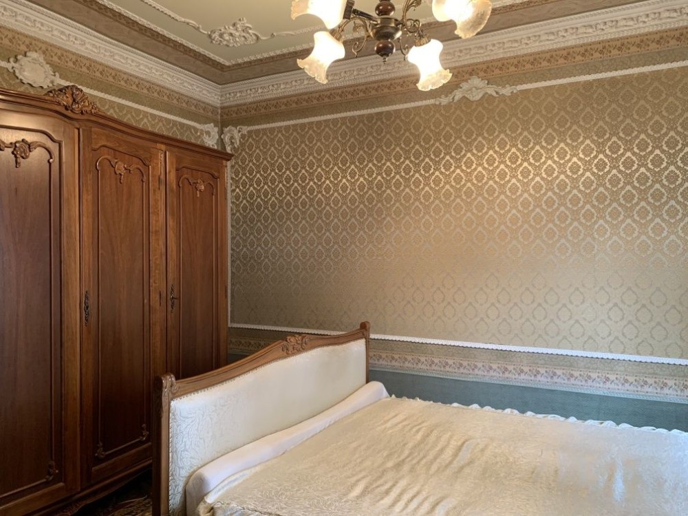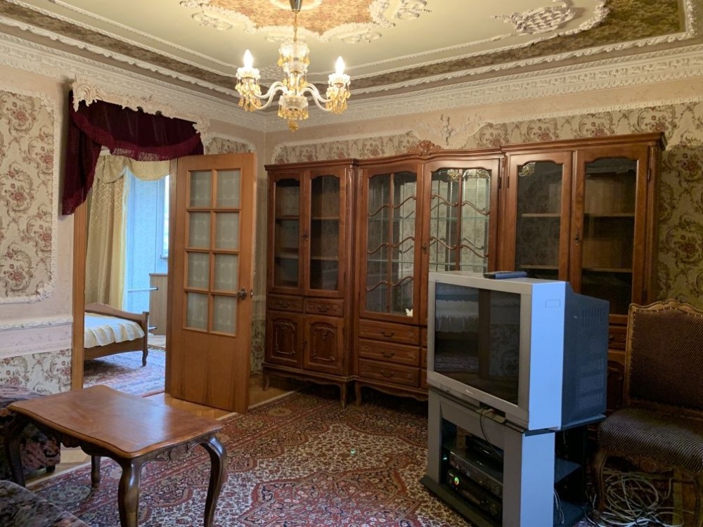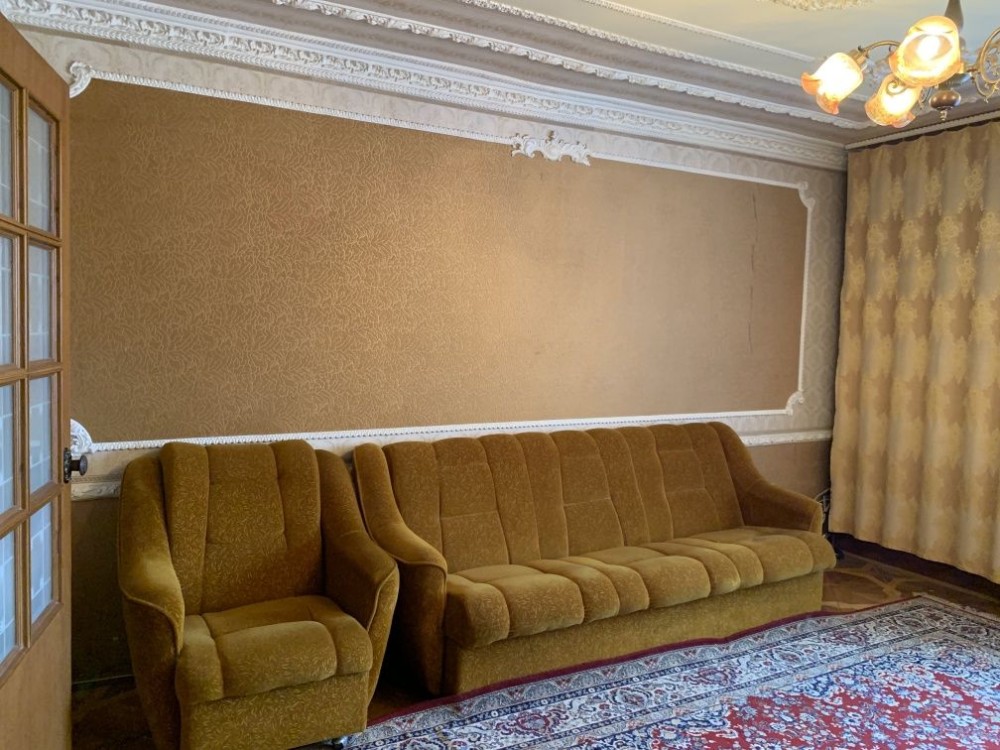 3 окремі кімнати, 1 прохідна вітальня і окрема кухня. Дубовий паркет, шовкові шпалери. Квартира вживу набагото краща, ніж на фото.