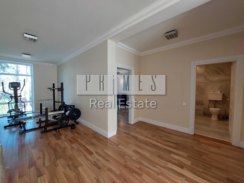Предлагается современное двухэтажний дом 250 кв.м, в 2-х километрах от Киева по Житомирской трассе в с. Стоянка. Ланшафтный дизайн участка 14 соток, автополив, бассейн, лаунж зона с барбекю. Крытая парковка на 4 авто. Дом рационально спланирован: 1-й этаж – большая, просторная кухня с островом, оборудованная всей необходимой техникой. Гостиная с действующим камином, гостевая спальня, встраиваемые шкафы, большой с/узел с душевой кабиной, бытовая комита (прачечная), котельная, система очистки воды, газовый котел. Удобная деревянная лестница с подсветкой. 2-й этаж – большая спальная комната с выходом на балкон, гардеробная и ванная комната. Детская комната, с/узел с ванной. Тренажерная зона. В доме много больших окон, светло и комфортно. Своя скважина, система глубокой очистки воды, зонированное освещение, теплый пол, кондиционеры в каждой комнате, камеры видеонаблюдения. Дом находится в живописном месте среди вековых сосен – тишина, покой и конфиденциальность круглый год. Соседи постоянно проживают. В пешей доступности озеро, лес. Больше всего Сильпо в области, заправка КЛО, Мак Дональдс, аптека, магазины, ресторан грузинской кухни – 5 минут. До г. Академгородка 7-10 минут. Есть видео.