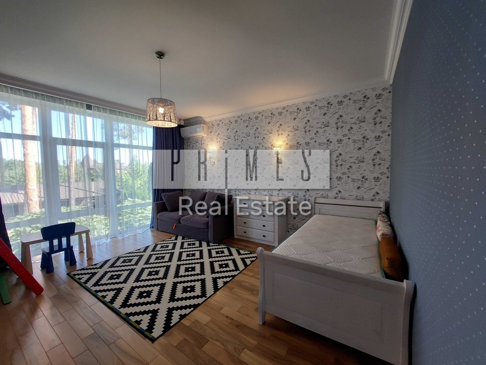Пропонується сучасний двохповерховий будинок 250 кв.м, в 2-х кілометрах від Києва по Житомирській трасі у с. Стоянка. Ланшафтний дизайн ділянки 14 соток, автополив, басейн, лаунж зона з барбекю. Крита парковка на 4 авто. Будинок раціонально спланований: 1-й поверх- велика, простора кухня з островом, обладнана усією необхідною технікою. Гостинна кімната з діючим каміном, гостьова спальня, вбудованні шафи, великий с/вузол з душовою кабіною, побутова кімата (пральня), котельня, система очистки води, газовий котел. Зручні деревяні сходи з підсвіткою. 2-й поверх- велика спальна кімната з виходом на балкон, гардеробна та ванна кімната. Дитяча кімната, с/вузол з ванною. Тренажерна зона. В будинку багато великих вікон, світло та комфортно. Своя скважина, система глибокої очистки води, зоноване освітлення, тепла підлога, кондиціонери в кожній кімнаті, камери відеоспостереження. Будинок знаходться в мальовничому місці серед віковічних сосен - тиша, спокій та приватність цілий рік. Сусіди постійно проживають. В пішій доступності озеро, ліс. Найбільше Сільпо в області, заправка КЛО, Мак Дональдс, аптека, магазини, ресторан грузинської кухні - 5 хвилин. До м. Академмістечо 7-10 хвилин. Є відео.