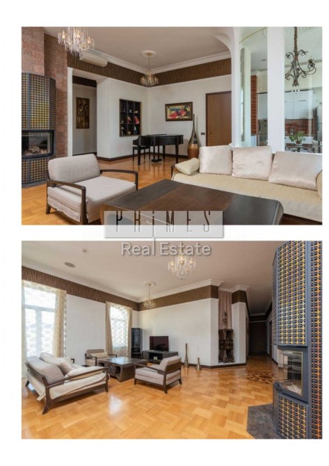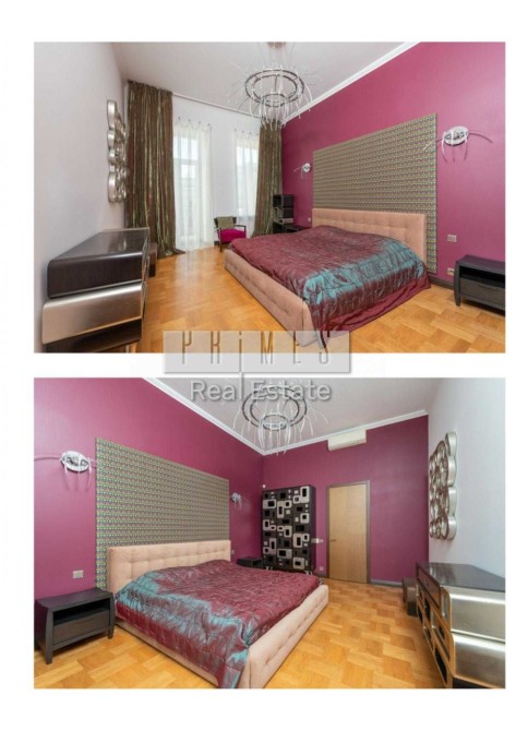Пропонується в оренду простора квартира площею 200 м², розташована на 5-му поверсі цегляного "царського" будинку в самому центрі Києва. Високі стелі 4 метри, товщина стін 1 метр, а також камін, що діє, на дровах створюють атмосферу затишку і престижу.