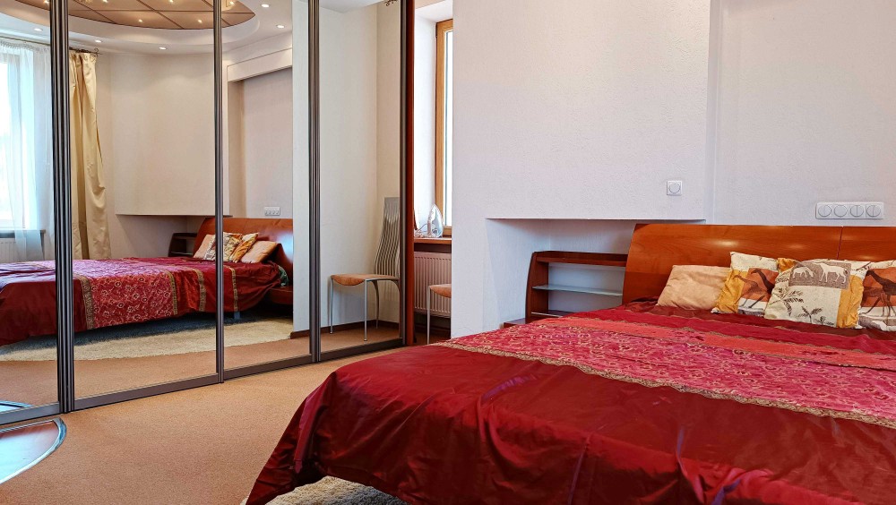 Код: 172. ПОМЕСЯЧНО АРЕНДА АКТУАЛЬНА В ПЕРИОД С 01.09 ДО 30.05 (в летний сезон сдается посуточно от 2-х суток, раннее бронирование от 5-и суток и более). Пятикомнатная квартира в центре Одессы, ул. Дерибасовская/угол Греческой площади, 2/3 - эт. дома - памятника архитектуры, общая площадь 100 кв. м. Авторский ремонт, сочетание классики и современного стиля, качественные материалы, высокие потолки (5 м.), большой зал в двух уровнях с LCD телевизором, четыре спальни с большими двуспальными кроватями, дорогая итальянская мебель, кожаная мягкая мебель, огромная круглая кровать в центре главной спальни, создают атмосферу абсолютного комфорта. Санузел с джакузи на 2 места. Квартира оборудована: 3 кондиционера, плазменный TV + 2 LCD TV в спальнях, WI-FI интернет, большая джакузи, DVD, стиральная машина, CD-магнитола, спутниковое ТВ, микроволновая печь, фен, кофеварка, тостер, телефон. Прекрасный вид из окон на Греческую площадь. Удачное расположение дома, самое сердце Одессы, множество достопримечательностей, потрясающая архитектура, множество кафе и ресторанов под открытым небом. Напротив дома (в самом центре Греческой площади) расположен большой торговый центр «Афина» (с платным подземным паркингом). Вход в дом - железные ворота с домофоном. Допускается проживание с животными. Аренда от 1-го месяца и более. Стоимость может варьироваться в зависимости от срока аренды. Перед просмотром уточните наличие и детали по VIBER, WHATSAPP или TELEGRAM, указав «КОД» из объявления. КОМИССИЯ ЗА УСЛУГИ РИЭЛТОРА - 50% от месячной аренды (разовая оплата при оформлении договора).