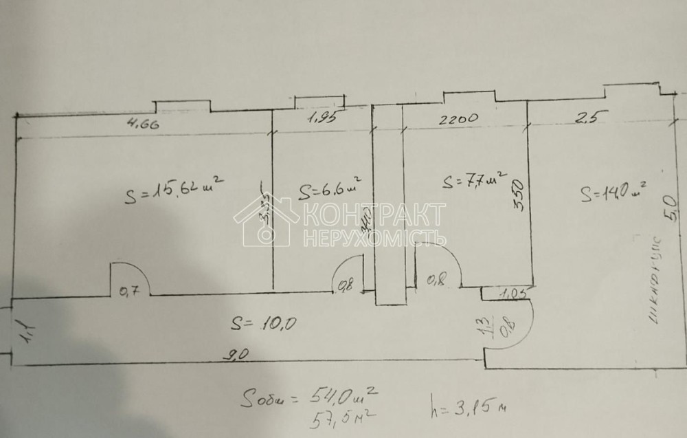 4 кімнати: 15.6м², 6.6м², 7.7м², 14.0м²