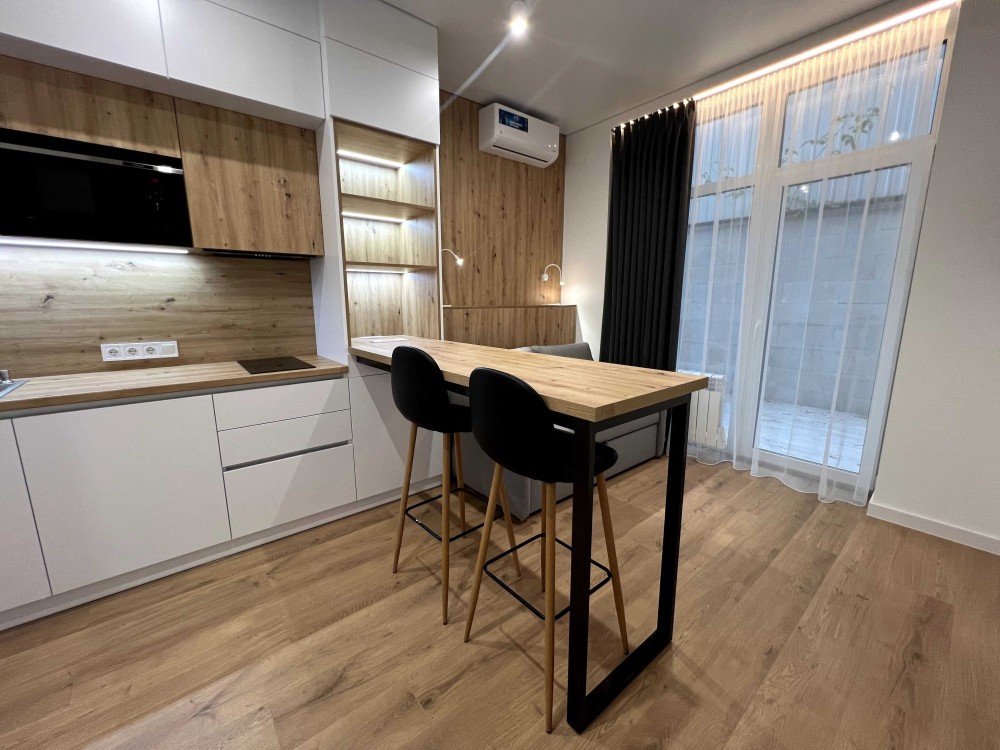 Квартира з новим дизайнерським ремонтом, повністю мебльована та оснащена всією необхідною побутовою технікою. Готова до заселення.