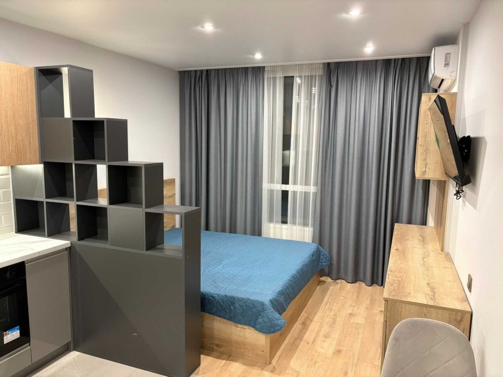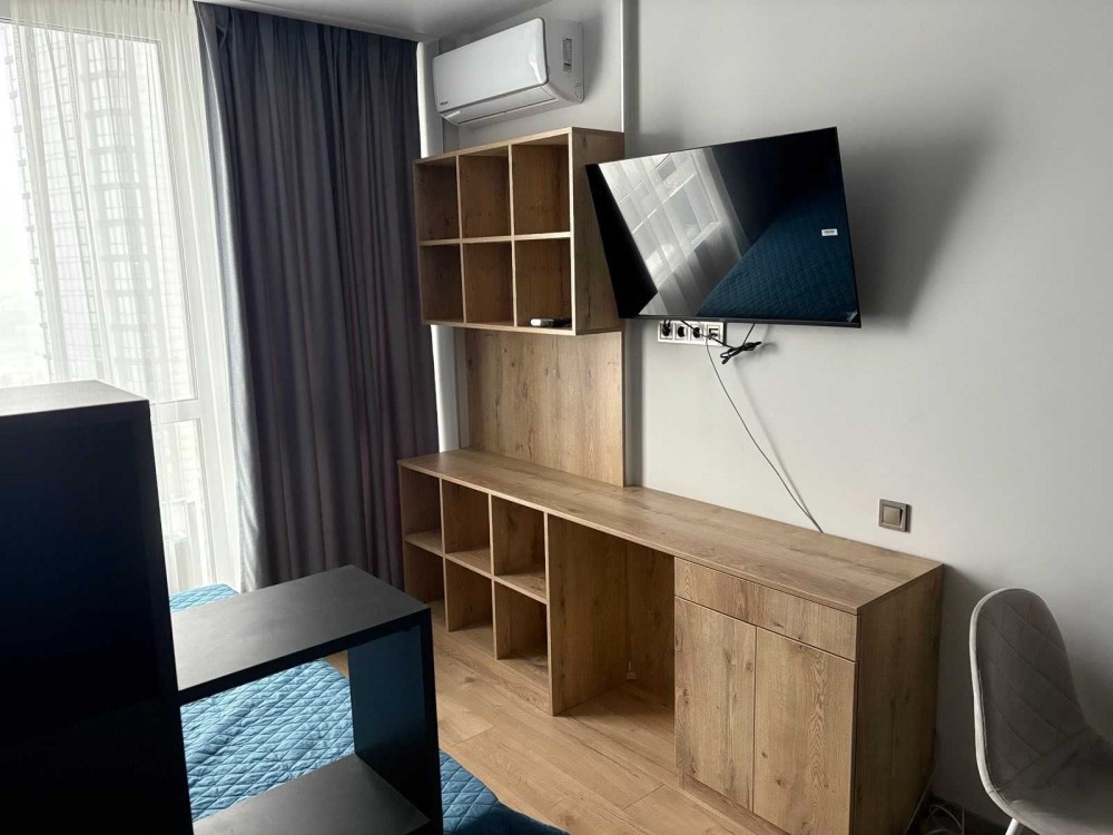 Єврооднушка - олнокімнатна-студія. 17 поверх. Вид на Дніпро. Довгостроково. Комфортне житло. Вся побутова техніка в наявності. Меблі і техніка нові. Підлога з підігрівом. До метро 3 зупинки. Поруч супермаркет Новус, Торгово-розважальний центр River Mall, парк на набережній Дніпра, дитячий і спортивні майданчики. В будинку підземний паркінг - укриття. Генератор. Новий ремонт