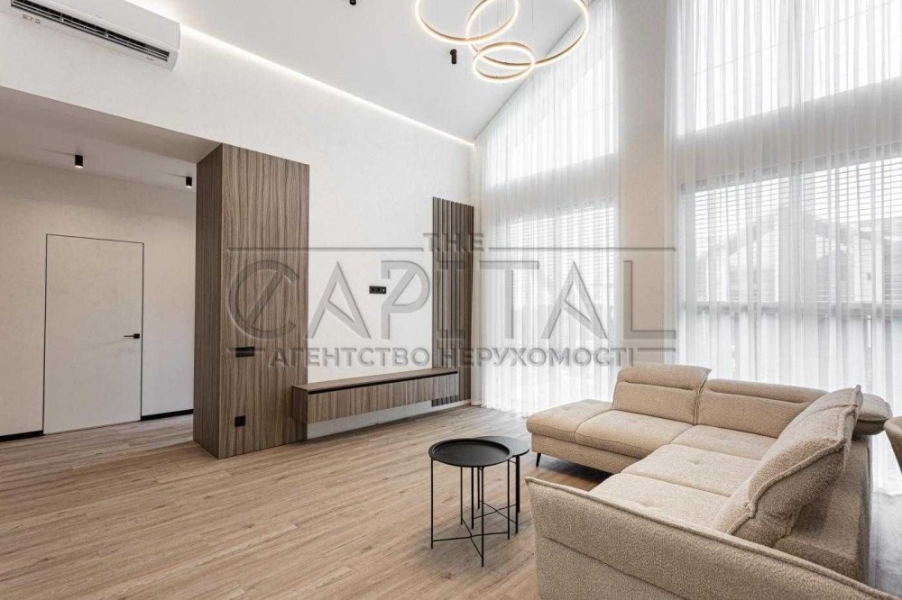 Пропонується в оренду стильний та комфортний будинок площею 120 м² у закритому котеджному містечку в с. Крюківщина. Зручне розташування — лише 10 хвилин до метро Теремки та ТРЦ «Respublika Park».