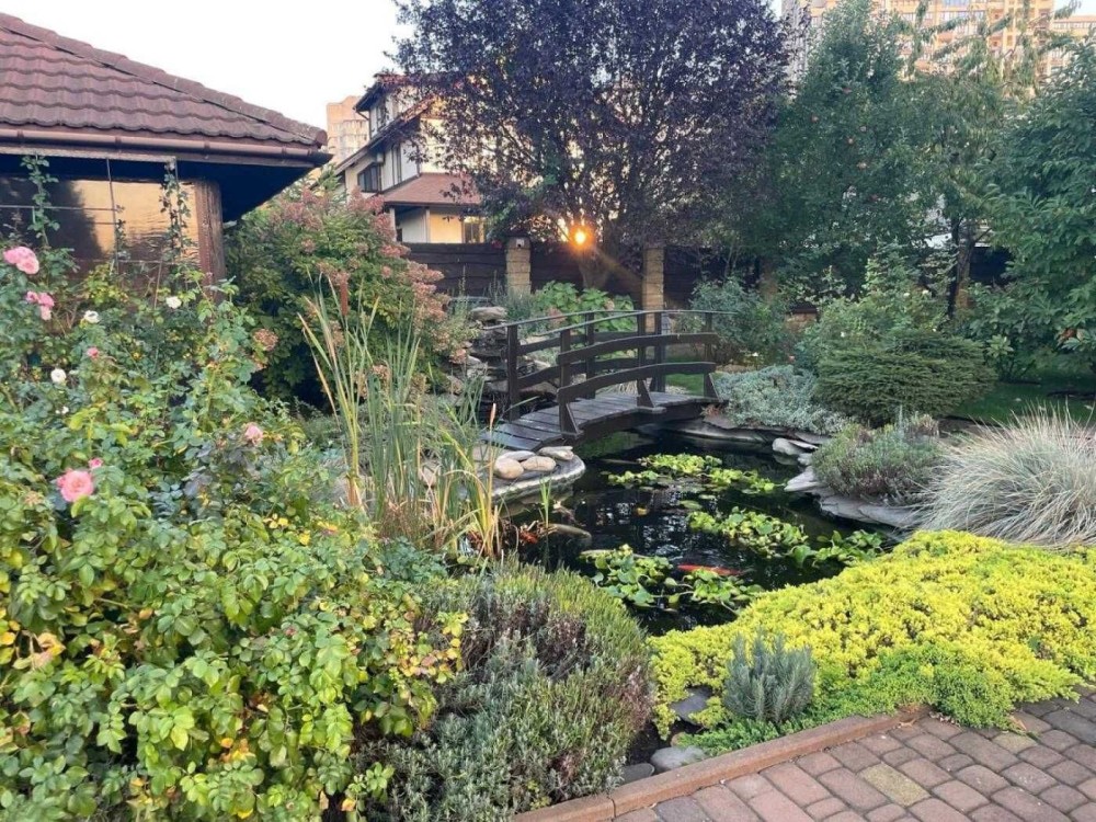 Територія 15 соток з ландшафтним дизайном засаджена рідкісними рослинами/деревами зі щотижневим доглядом садівника