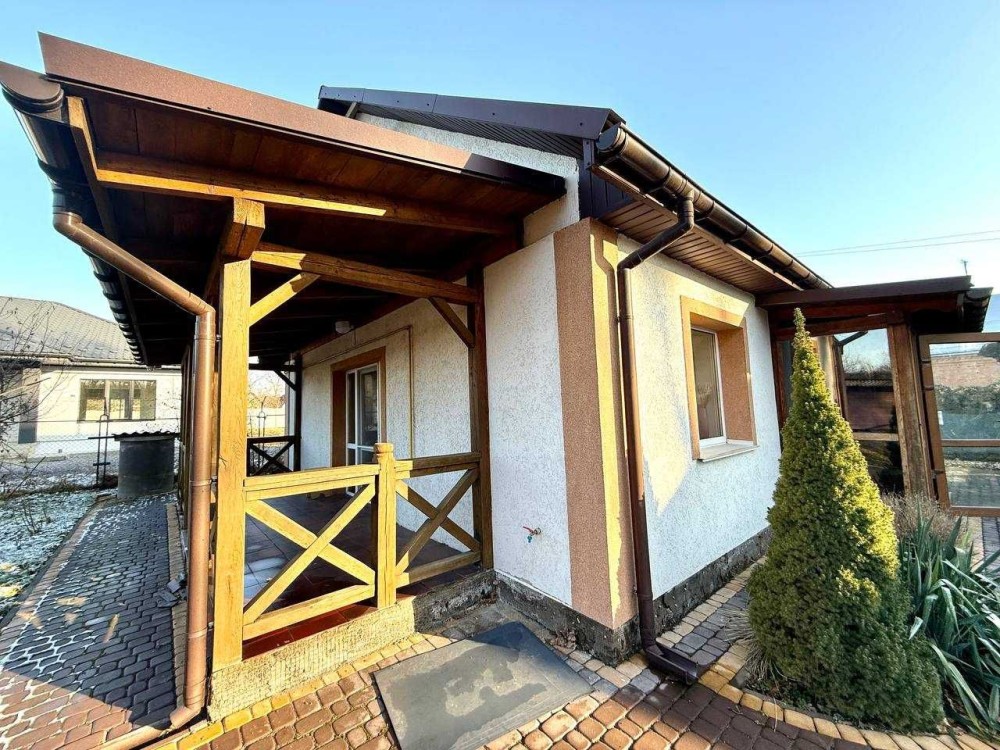 Сам будинок з газовим опаленням та є ще пічне опалення. З комунікацій інших - це світло, своя артезіанська свердловина, тобто завжди чиста вода, але є ще й фільтр для очистки води, щоб вона була ще чистіша. Та вигрібна яма екологічна, тому що ніколи за три роки існування будинку, ще не вигрібалася. Велика ділянка землі, саме більше 25 соток, тротуарна плитка в дворі, за ворота можна заїхати, поставити, дуже велику кількість автомобілей чи інші речі, за потребу. Сам гараж зайнятий речами власника, який за кордоном.