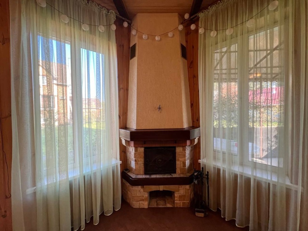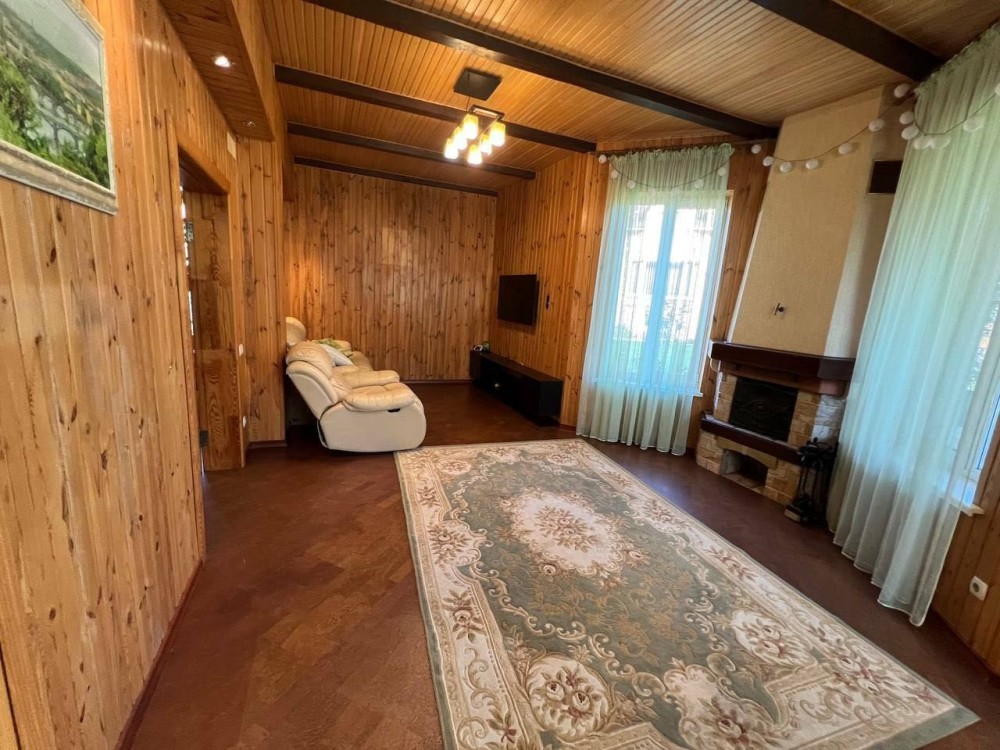 Перший поверх: Простора вітальня, кабінет, кімната для відпочинку з каміном, сучасна кухня, душ, санвузол.