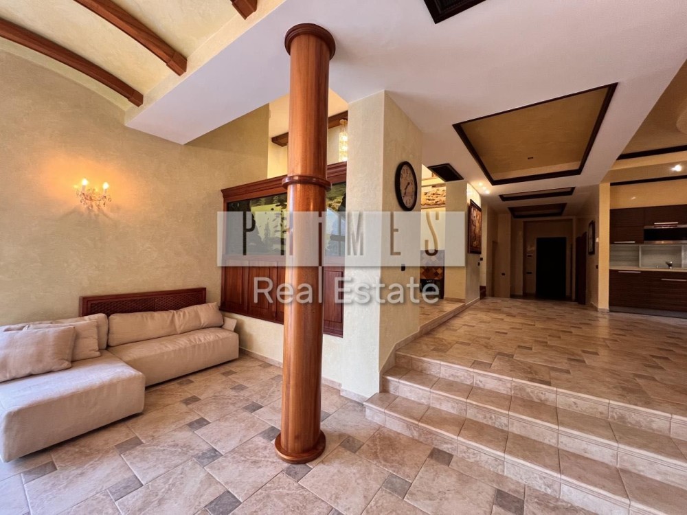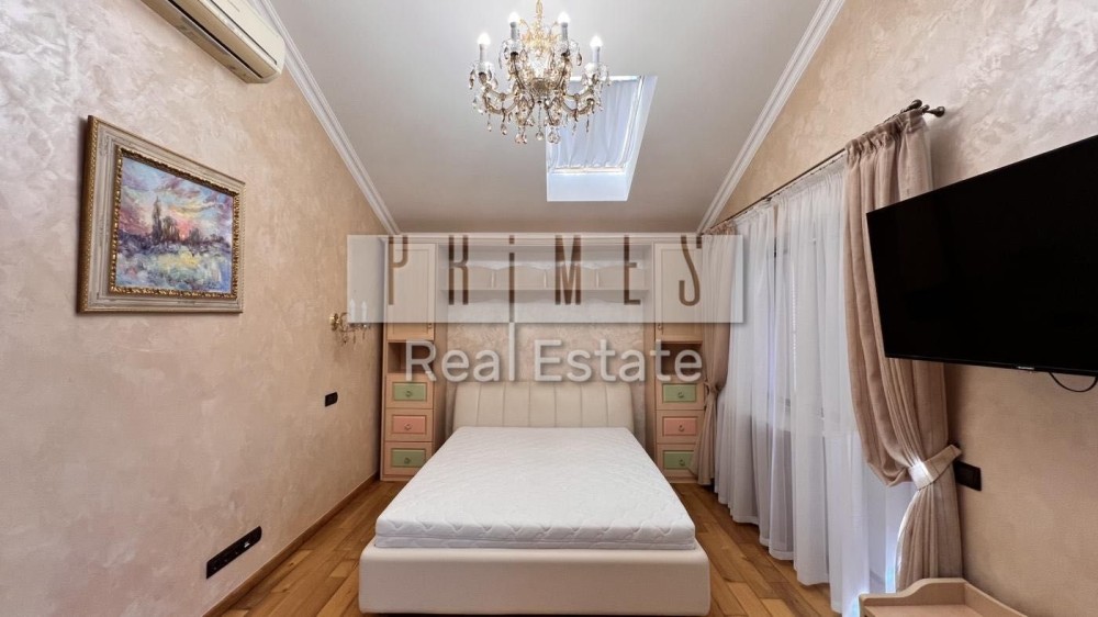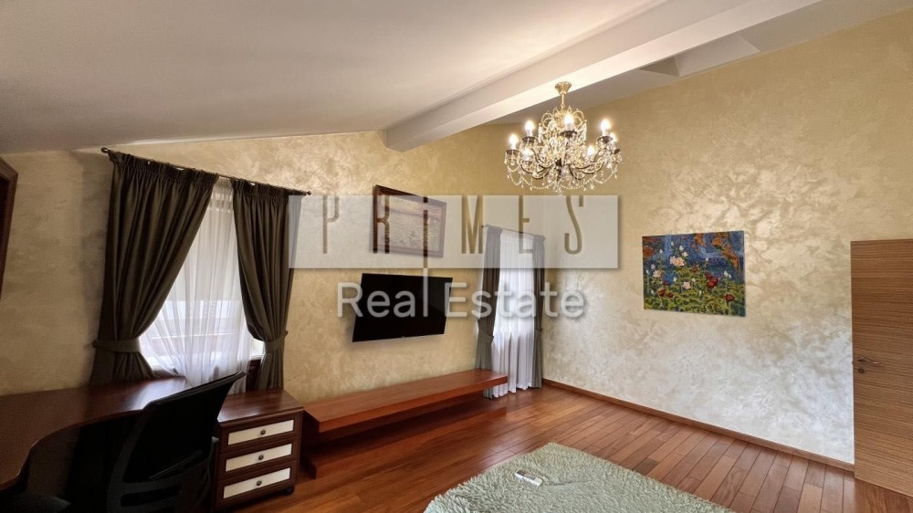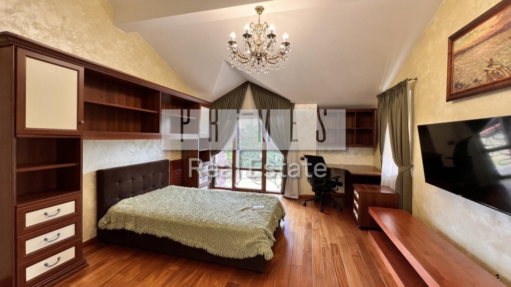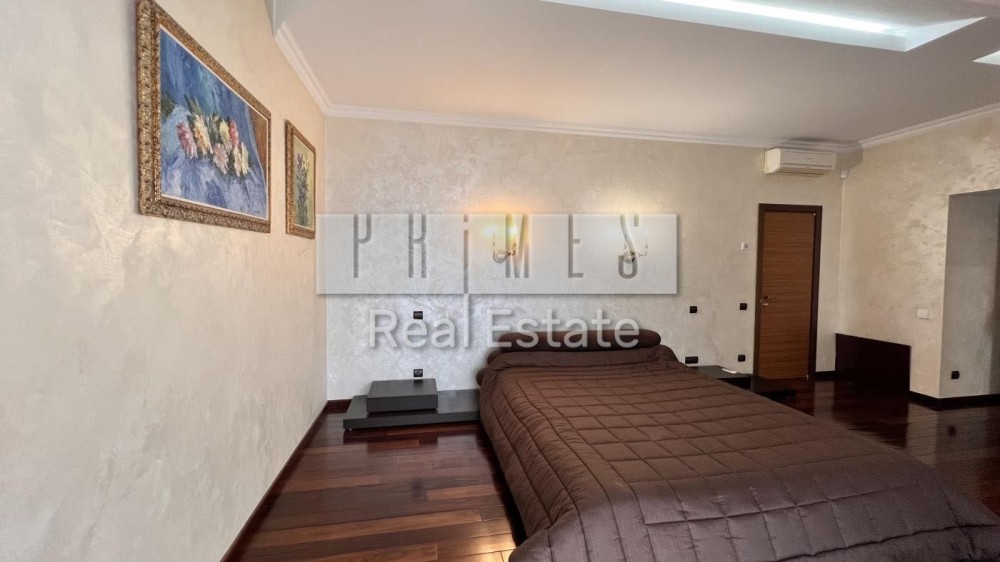 5 спальних кімнат, кухня-їдальня, кімната відпочинку з видом на Дніпро, камінна зала, 3 гардеробні кімнати, 3 балкони, гараж на 2 авто, тераса, сауна, масажна кімната, басейн, технічні приміщення