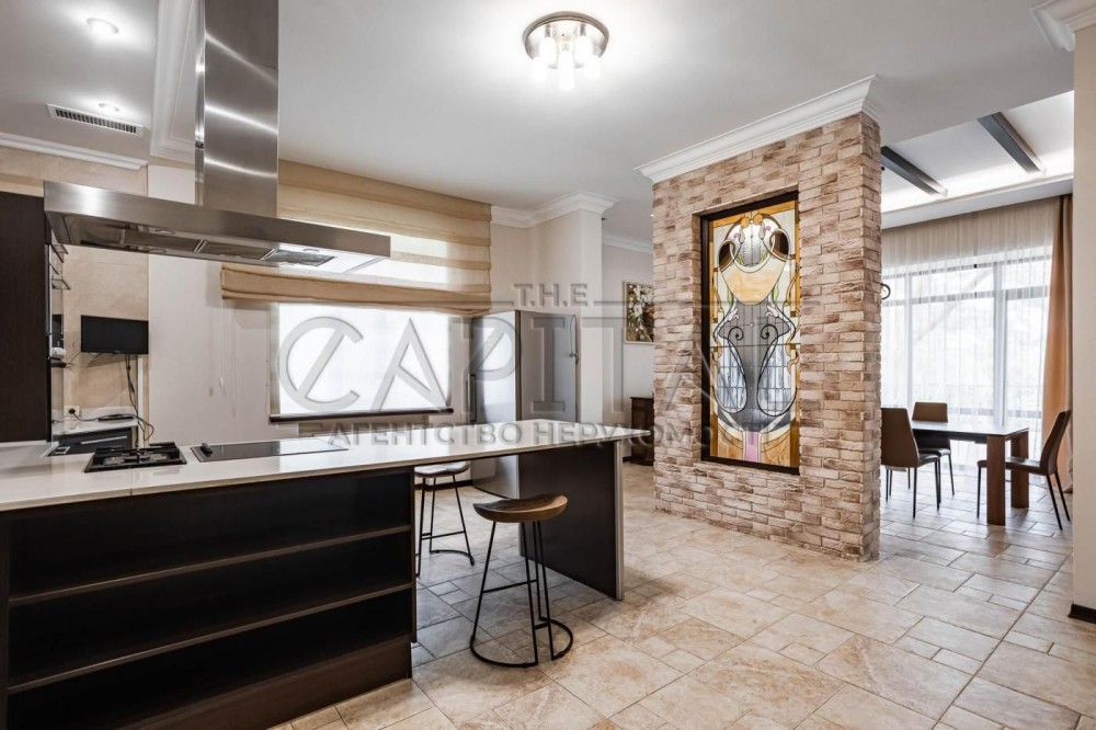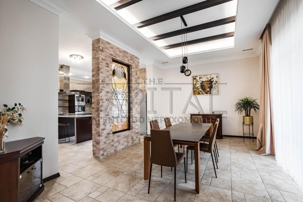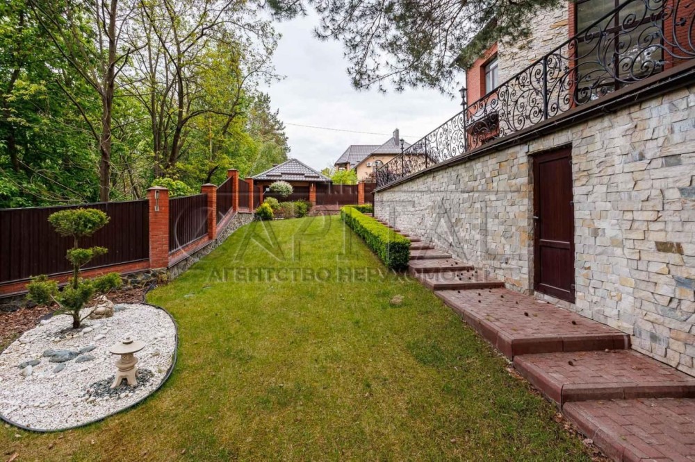 Оренда будинку, Лісники, Києво-Святошинський р-нАренда дома, Лесники, Киево-Святошинский р-нПредлагается в аренду 3-этажный Дом (500м2) 30 соток, с шикарным бассейном, в Лесниках, в самом лучшем районе - Стежки, Новообуховская трасса, от Печерска 15 минут.Планировка: - гостиная со вторым светом и камином- кухня-столовая с выходом на террасу 110м2- 4 мастер спальни (со своими гардеробными и санузлами)- кабинет с выходом на террасу- детская игровая- гостевая комната - спорт зал- сауна- комната для персонала/охраны- гараж на 2 машиныНевероятная тишина, очень много зелени, шикарный ландшафт, безопасно!Полностью автономный дом – кроме генератора установлен инвертор и мощные аккумуляторы, которые в автоматическом режиме переключаются в случае отсутствия электроэнергии и позволяют не только экономить топливо для генератора, но и на них полностью функционирует дом – скважина и отопление, и все необходимое для комфортного проживания.Дом находится в давно застроенном элитном массиве Стежки, присутствие соседей совсем не чувствуется) Сочетание невероятной природы и максимальная близость к Киеву (4 км) – делает проживание очень комфортным.В доме 4 спальни, каждая со своим санузлом и гардеробной, кабинет с выходом на террасу, большая гостиная со вторым светом и камином, полностью оборудованная кухня и столовая с выходом на видовую террасу, детская игровая, гостевая комната, спортзал, сауна, гараж на 2 автомобиля, комната.Дом полностью обставлен качественной мебелью и бытовой техникой ведущих мировых производителей. Благодаря новейшим технологиям, кроме газового отопления, оборудован еще тепловыми насосами фирмы Vaillant, эксплуатация очень экономична.На территории есть парковка на 4 автомобиля, есть второй заезд с парковкой на 2 автомобиля. На участке шикарная зона отдыха с бассейном (10х4м), бассейн с подогревом и противотоком. Зона барбекю оборудована стационарной печью, грилем и мойкой. Все продумано до мелочей.Участок очень красивый, видовой с ошеломляющим ландшафтным дизайном, корабельные сосны полностью окружают дом. Большое количество декоративных насаждений, рулонный газон и очень красивый водопад, впадающий в озеро с разноцветными рыбками и водными лилиями, создают комфортную уютную атмосферу отдыха.В доме есть все необходимое и для безопасности проживания – охранная сигнализация, видеонаблюдение и пункт охраны находится в 50 метрах от дома, где постоянно дежурит экипаж охранной фирмы. В минуте ходьбы от дома заповедный лес, прогуливаясь по которому Вы выходите к большому зарыбленому озеру. 3 минуты езды – и Вы в Сильпо, в АТБ или McDonalds, еще пару минут – и Вы в Мегамаркете и Мануфактуре! Там же и клиника Мануфактура, работавшая даже в 2022 году. До Печерска – 10 минут езды по шикарной скоростной Новообуховской трассе!Вы почти в городе и при этом наслаждаетесь невероятной природой.#A16373