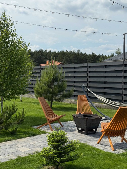 Оренда котеджів в екологічно чистому районі під Києвом. Кожен будинок має закриту територію на 6 сотках, де є чан з підігрівом, місце для барбекю, зона кострища, а також лазня на дровах у будинку. Сосновий ліс в пішій доступності.