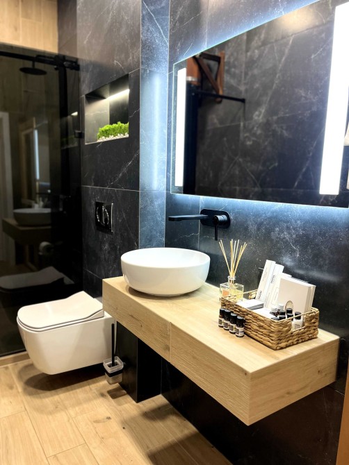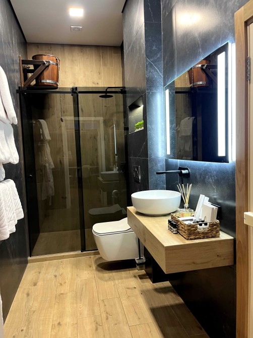 • Комфорт Кондиционер, Подогрев полов, Автономное отопление, Двуспальная кровать, Дополнительное спальное место, Детская кроватка, Душевая кабина, Сауна, Джакузи, Бассейн, Набор для душа, Терраса, Парковочное место