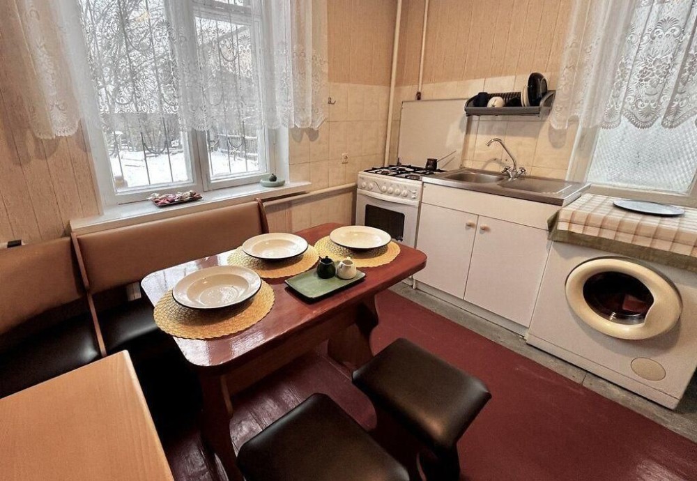 Загальна площа - 60 кв.м: дві спальні кімнати, вітальна, кухня - 12 кв.м, суміжний санвузол.