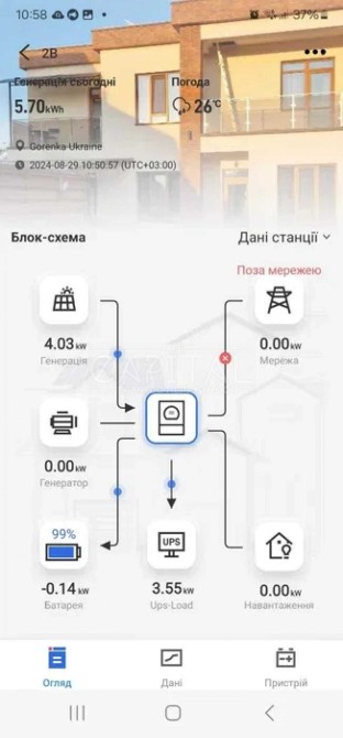 Повністю автономний будинок! Власна свердловина, септик, безперебійна система електропостачання, що складається з акумулятора 6 кВт, інвертора 6 кВт, сонячних панелей 6 кВт/годину та бензинового генератора 8 кВт.