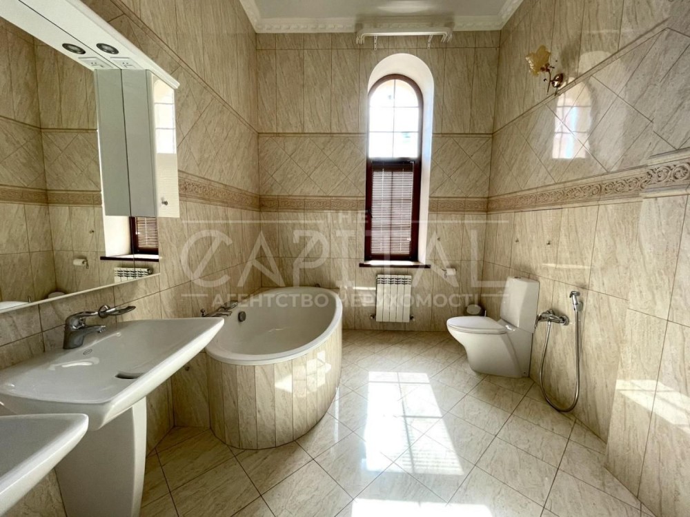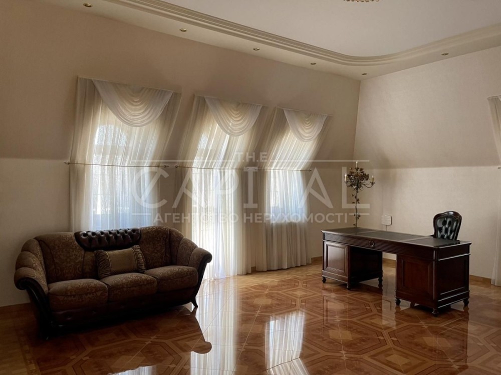 Пропонується в оренду триповерховий будинок із цокольним поверхом, повністю автономний і готовий до проживання.Площа будинку — 800 м²Ділянка — 18 сотокПланування: • 1 поверх: простора вітальня з каміном і виходом на терасу, кухня з балконом, столова, спальня, санвузол, гараж на 2 авто з зарядкою для електромобілів. • 2 поверх: майстер-спальня з гардеробом і джакузі, 2 додаткові спальні, гардеробна, санвузол, хол з каміном/ігрова кімната. Балкони у кожній кімнаті. • 3 поверх: кабінет із бібліотекою, мансардний зал з дзеркалами, електрокамін, санвузол, 2 балкони. • Цокольний поверх: більярдна, кінозал, сауна, джакузі, душові, пральня, гардеробна, котельня, вихід до льоху.Технічне оснащення: • Сонячна електростанція з акумуляторами 50 кВт • Дизельний генератор 9 кВт • Газовий і електрокотли, тепла підлога, радіатори • Система очищення води Ecosoft • Оптоволоконний інтернет, кондиціонери • Товщина стін — 75 см 15 см утепленняОздоблення та інтер’єр:Використані мармур, онікс, сусальне золото, шовк, гобелени, кришталь. Унікальні елементи декору за італійськими зразками.Територія та інфраструктура: • Закритий двір з ландшафтним дизайном • Басейн 10х3.5 м з підігрівом • Панорамна опалювана альтанка • Навіс і паркомісця на 5 авто • Відеоспостереження, охоронна система, окремий будинок для охорони • В’їзд на територію через охоронуБудинок раніше використовувався як резиденція іноземного посла. Має відповідний рівень безпеки та документи для повторного оформлення такого статусу.Локація:Поруч ВДНГ, ЖК Нова Англія, метро, школи, дитсадки, торгові центри, ринки, ресторани, клініки.#A22280