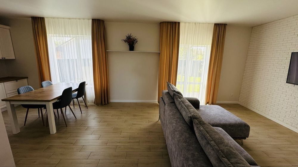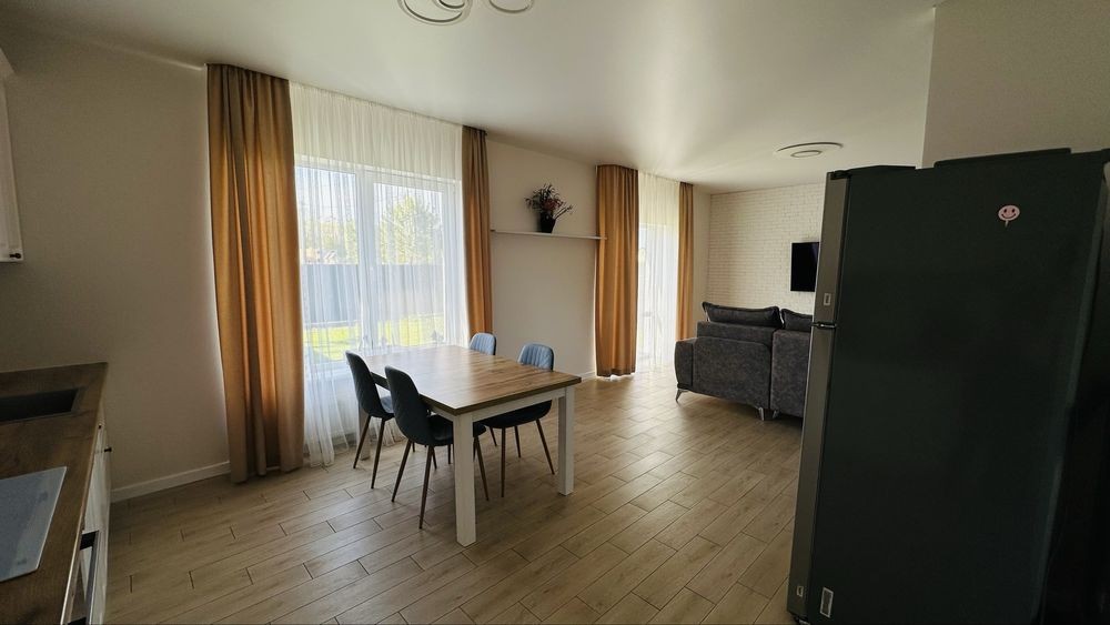 Здаю сучасний будинок-таунхаус з ремонтом та всією технікою, меблями, площею 75 м2. Недалеко від ТЦ Баобаб, на початку с. Боратин по вул. Мирна (біля «Агапе»). Асфальтована дорога до будинку, вуличне освітлення. Поруч зупинка.