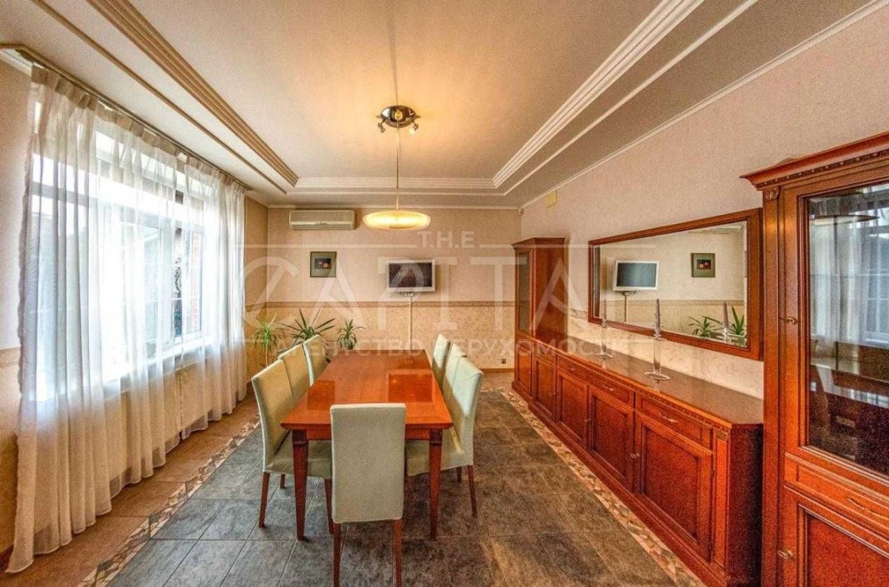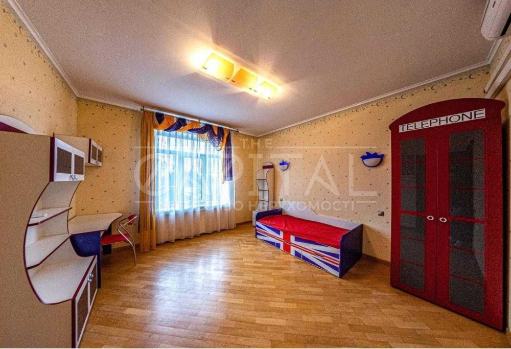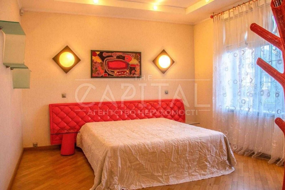 Три спальні (основна з лоджією), кабінет, дві ванних кімнати, хол, бібіліотека, вітальня з каміном, кухня-столова, літня тераса з кухні.