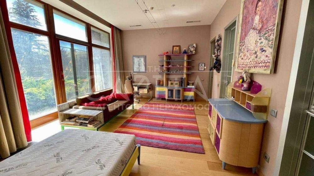 1-й поверх: дитячі та гостьові спальні, кабінет, ігрова кімната, камінна зала, столова, кухня, масажний кабінет та СПА-зона, обладнана басейном і двома видами саун. Дитячі кімнати мають власні гардеробні та санвузли, кожен з ванною та душовою. Гостьова спальня також має приватний санвузол.