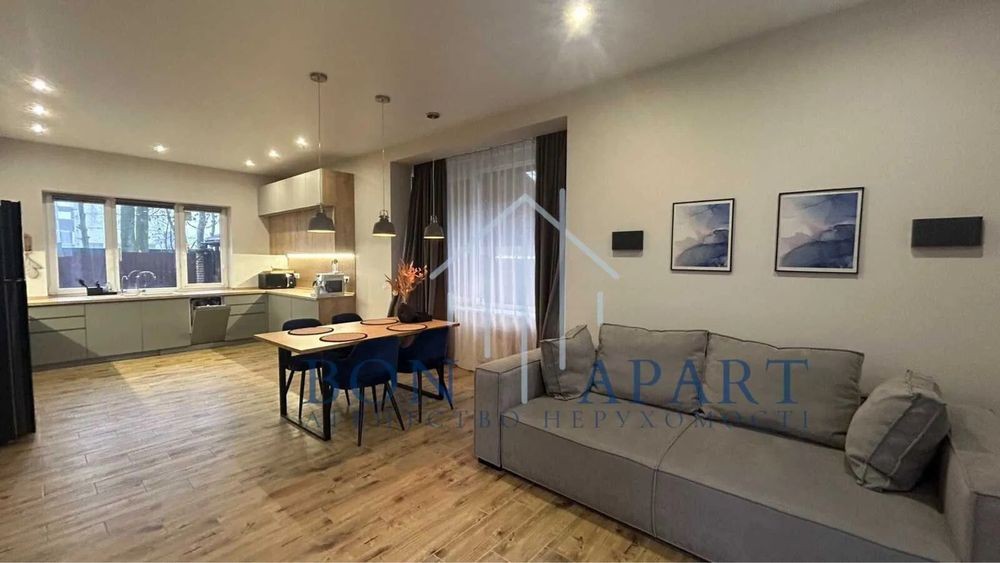 Будинок укомплектован сучасною мебелью і технікой.