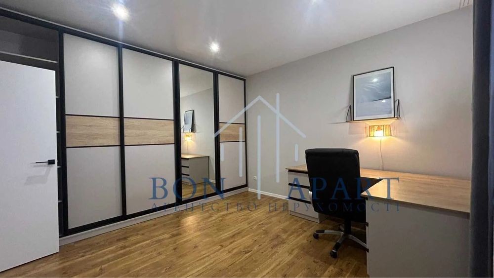 Другий поверх: Спальня з робочим місцем, великою шафою і балконом, кабінет з шафою-купе, кімната, санвузол з ванною.