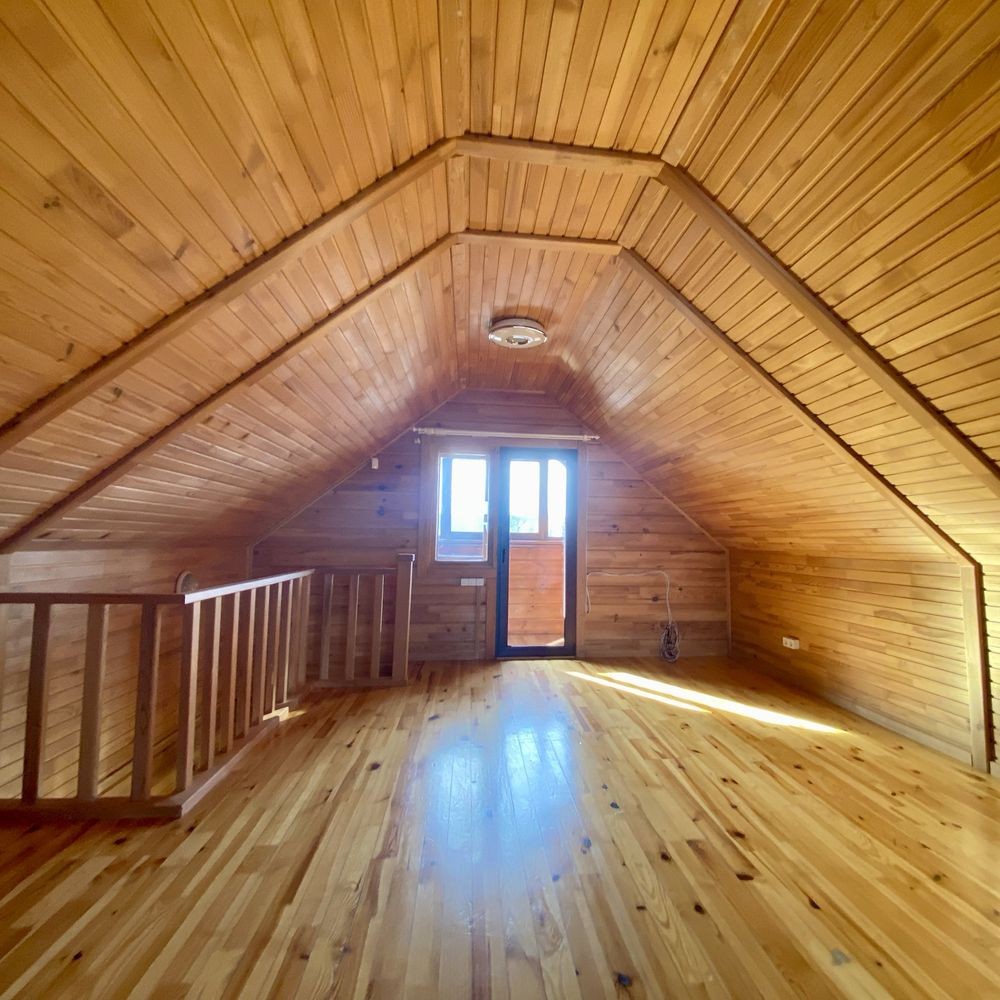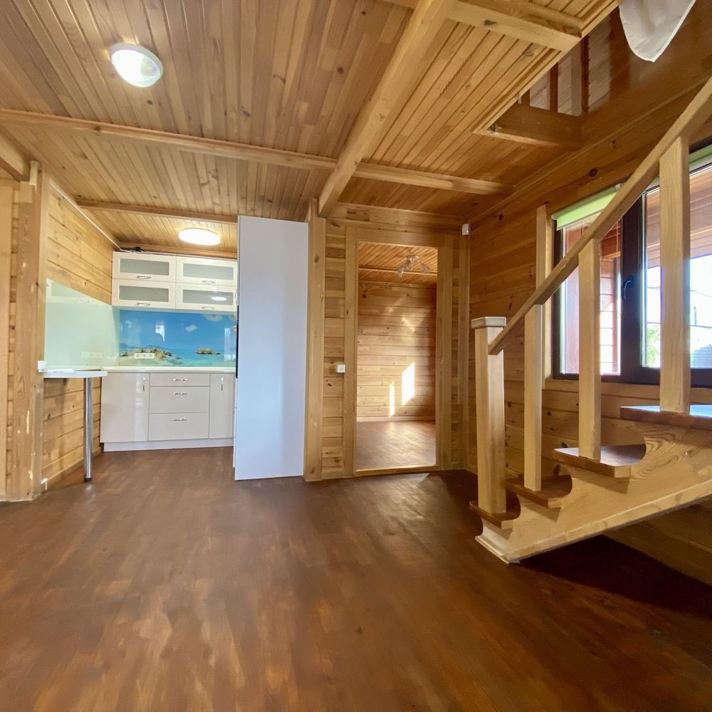 В будинку 2 поверхи, на першому - кухня-студія та спальня, сан вузол та душова, на другому - простора спальня з гарним краєвидом на р.Дніпро.