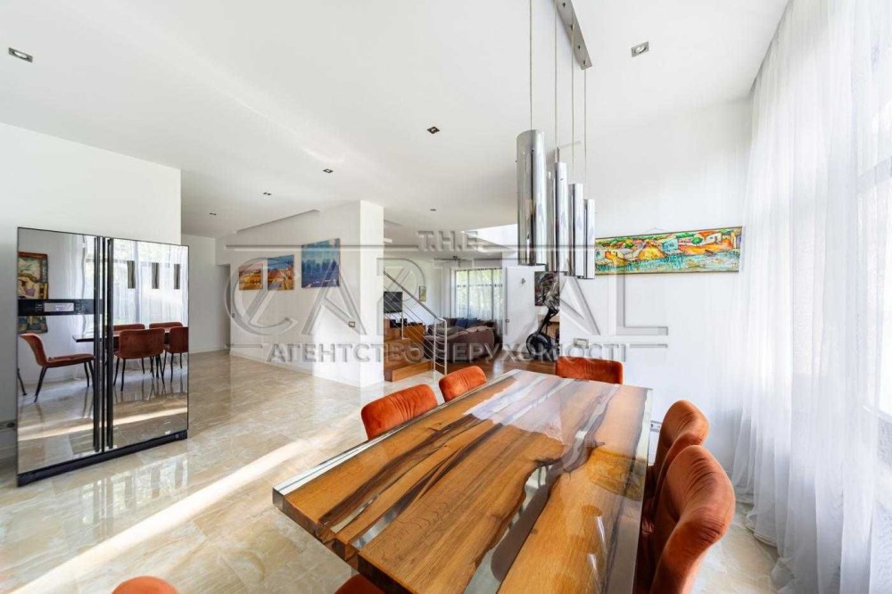 Ремонт виконано з використанням високоякісних матеріалів, що підкреслюють сучасний дизайн інтер’єру. Усі меблі, встановлені в будинку, є стильними та надійними.