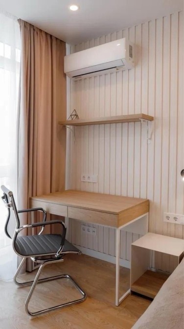 Виконано якісний дизайнерський ремонт у сучасному стилі з використанням дорогих матеріалів. Індивідуальне опалення та підігрів підлоги створюють ідеальний мікроклімат у будь-яку пору року. У квартирі облаштована робоча зона, є кондиціонер, телевізор та інші необхідні меблі й техніка.