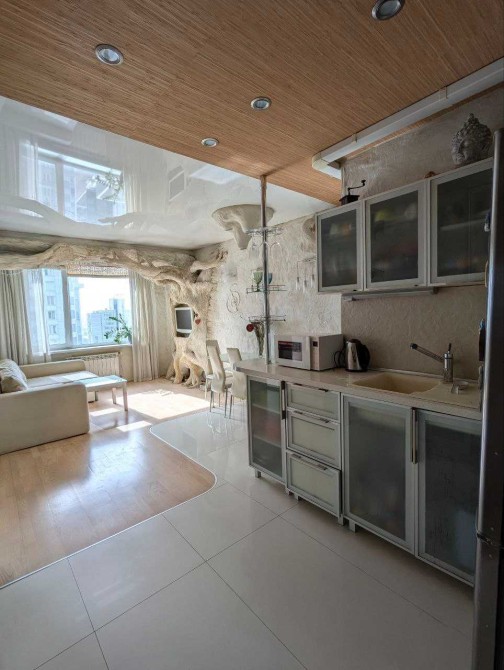 Квартира дуже тепла, з вікон відкривається чудовий краєвид на Дніпро та місто. Дуже зручне планування та дизайнерський ремонт: велика вітальня-кухня та відокремлена спальня з робочим місцем.