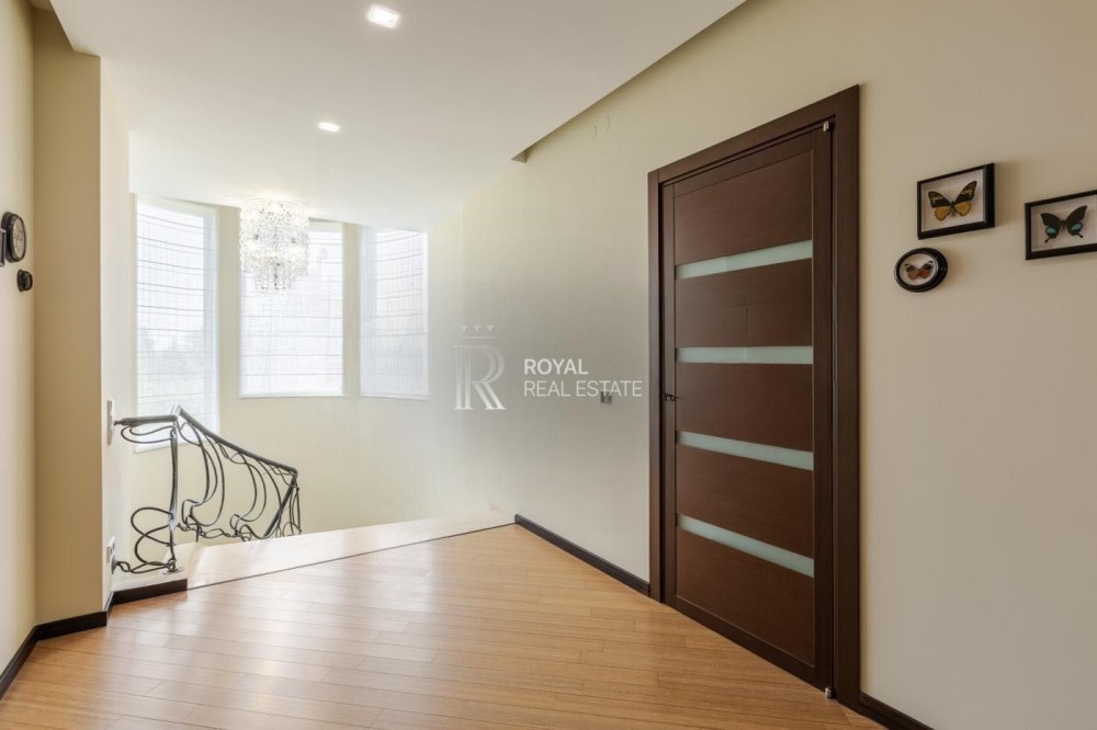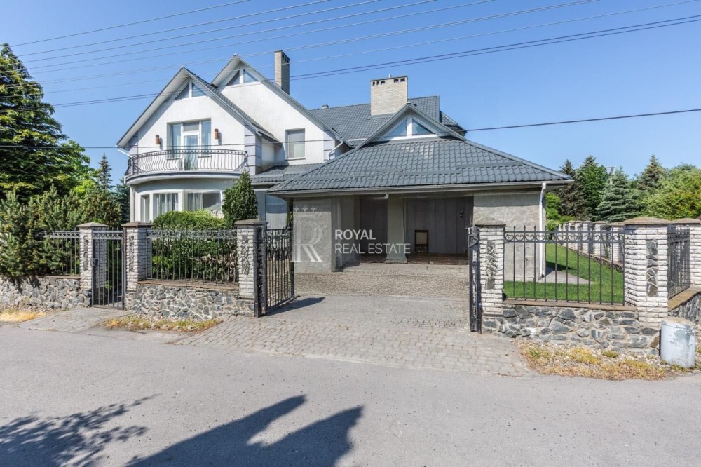 Двоповерховий будинок розташований у закритому котеджному містечку з охороною на ділянці 13 соток, неподалік від річки Дніпро.