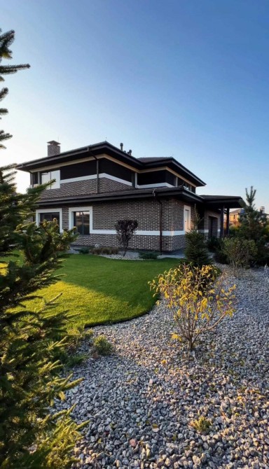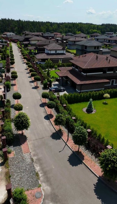 Ділянка з ландшафтним дизайном: дерева, рулонний газон і автоматичний полив – усе готове, щоб ви просто заїхали й насолоджувались.