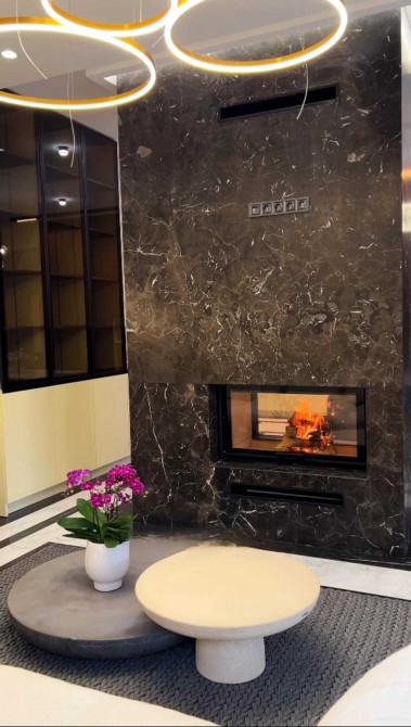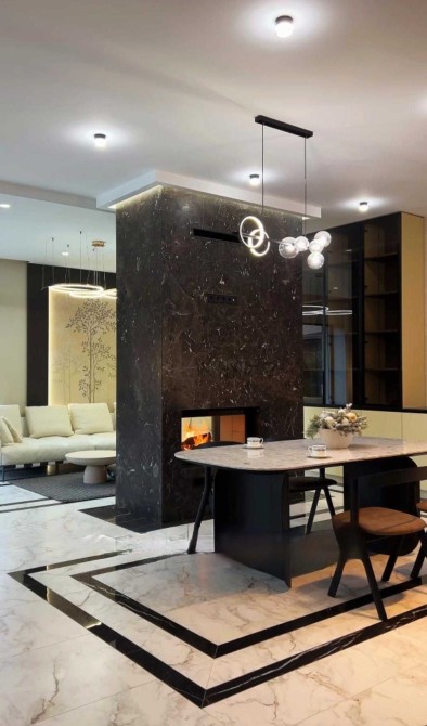 - Простора кухня-вітальня з каміном