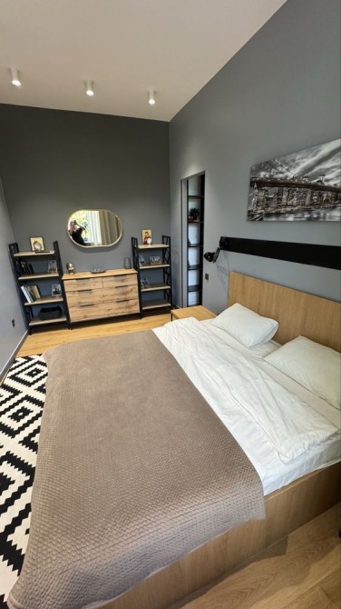 Загальна площа61 м2, кухня студія 10 м2 . Квартира складається з двох ізольваних спалень і просторої кухні студіо з дизайнерським ремонтом та усією необхідною технікою.
