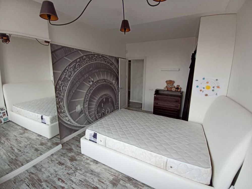 На другому рівні: 2 кімнати (дитяча та для дорослих), ванна кімната та гардеробна.
