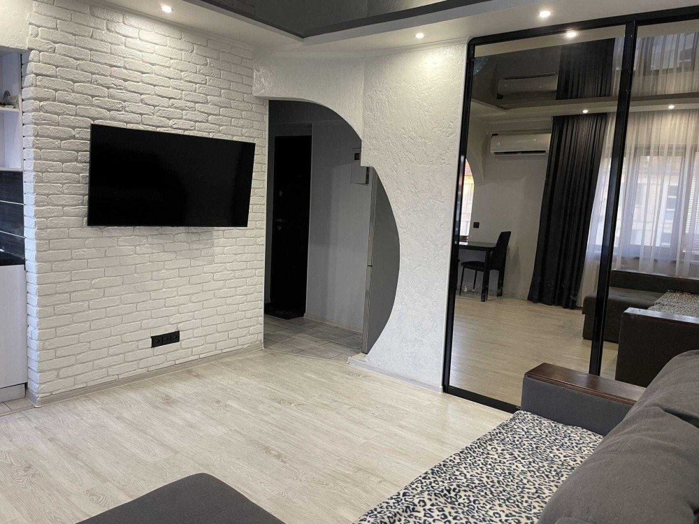 – Простора вітальня з кутовим диваном, телевізором та дзеркальною шафою-купе;