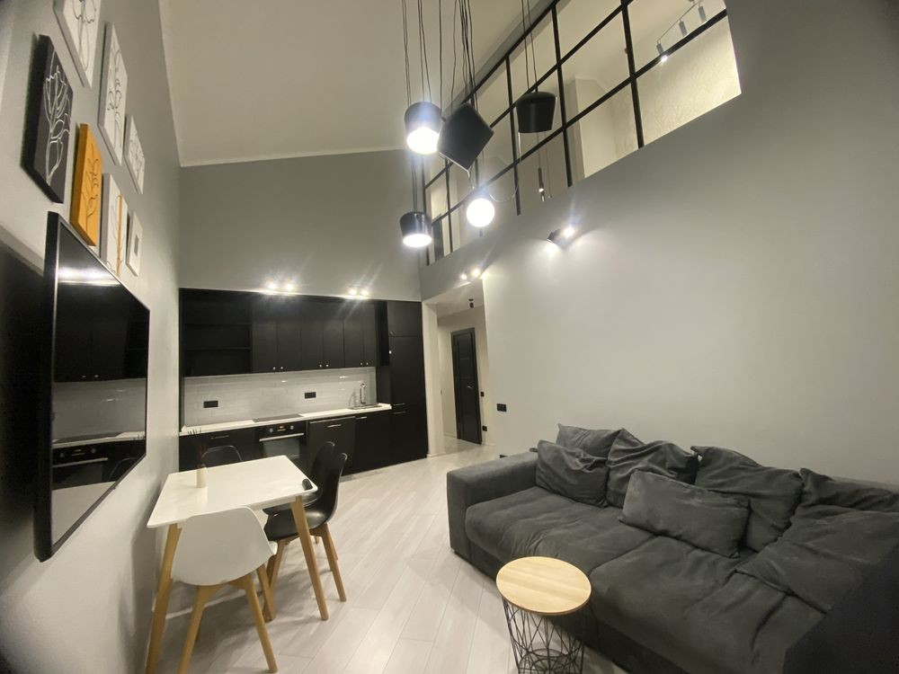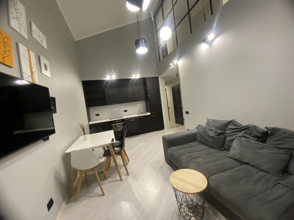 До оренди пропонується дворівнева квартира 70 м2 з двома спальними кімнатами та кухнею-вітальнеюна 14 поверсі.