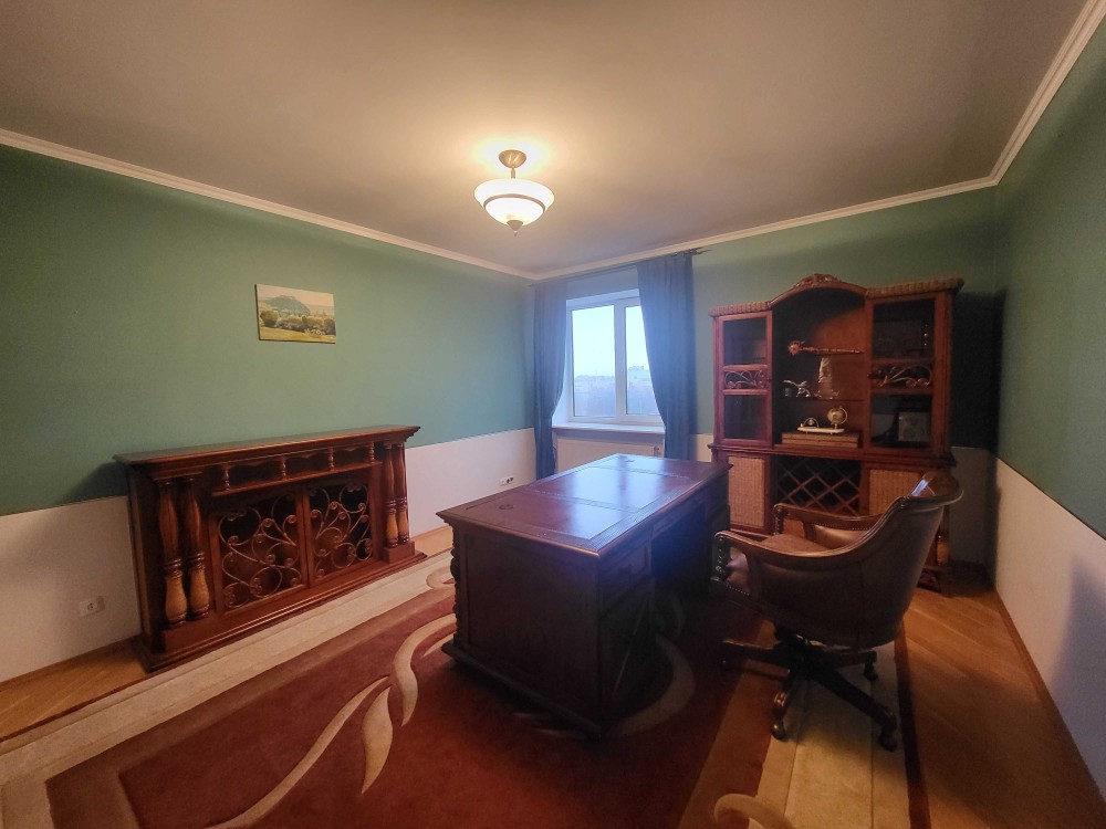 Практичне і раціональне планування — комфортна вітальня, три затишні спальні, кабінет, гардеробна, велика кухня з обідньою зоною, дві відпочинкові кімнати та два санвузла, балкон з чудовою панорамою на місто.