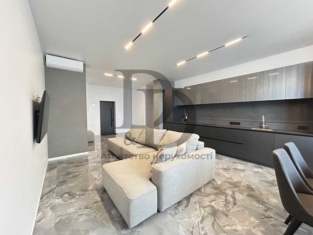 Простора 3-кімнатна квартира площею 100 м², розташована на 12 поверсі у престижному житловому комплексі DELMAR — одному з найкращих ЖК столиці.