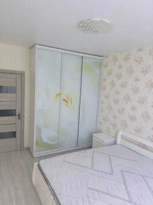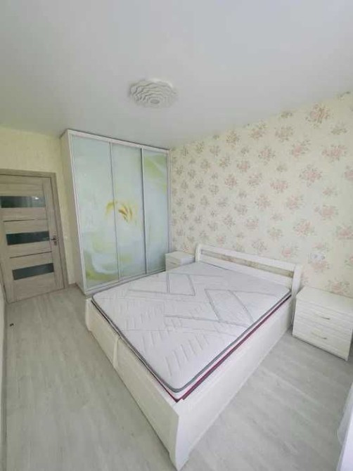 В спільній кімнаті - нове, велике двоспальне ліжко з ортопедичним матрацом та підйомним механізмом, приліжкові тумби, велика, містка шафа-купе.