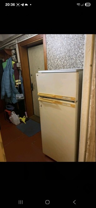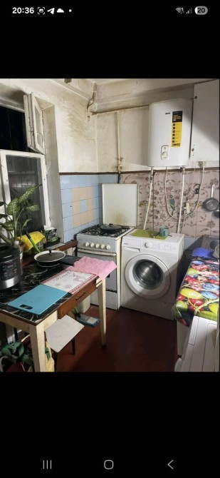 Здається кімната в двокімнатній квартирі.В кімнаті диван,шафа,стіл,свій холодильник В коридорі. Є пральна машина.