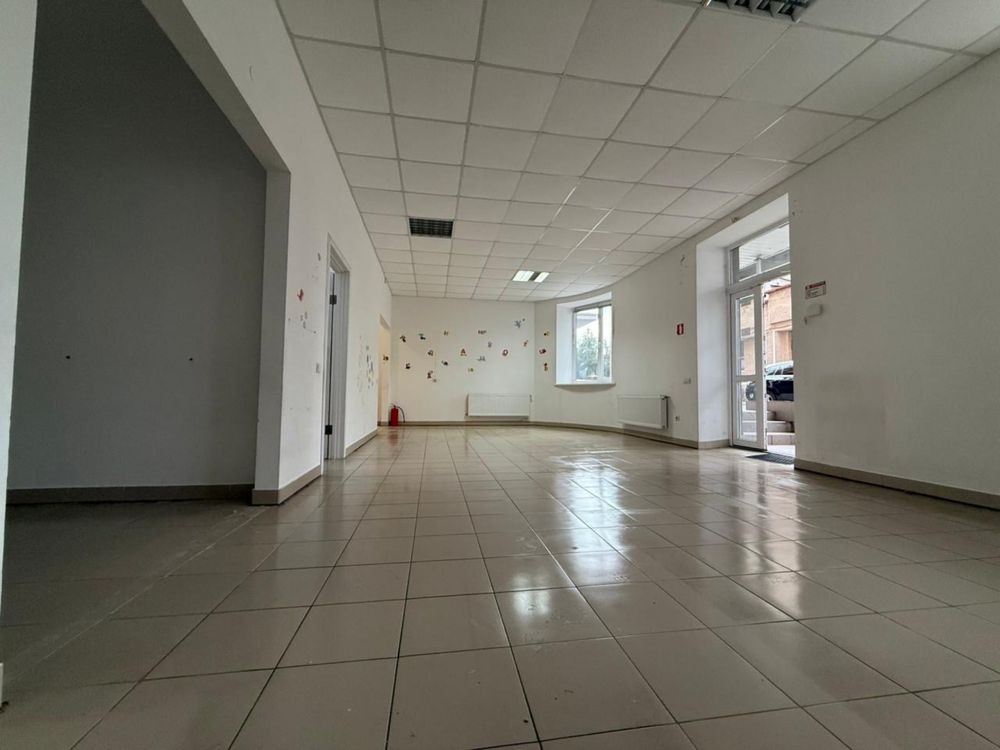 Здається в довгострокову оренду комерційне приміщення площею 82 м² з висотою стель 2,6 м. Приміщення складається з кількох кімнат, має санвузол, окреме підсобне приміщення з меблями, плитка на підлозі , стелі типу "армстронг" з вбудованим освітленням. Підійде під офіс, студію, дитячий центр або інші види діяльності.