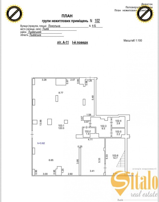 Висота 1 поверху 3.6 м.