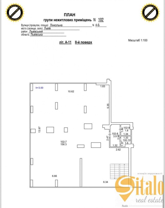 Висота 2 поверху 3 м.