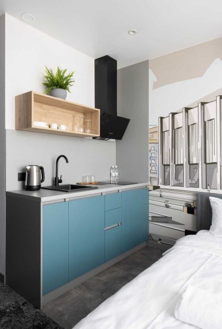 Оренда компактної квартири-студії (20 м²) в зручному районі в готелі B1 Hotel в 5 хвилинах від метро Академмістечко та 10 хвилин від метро Житомирська.