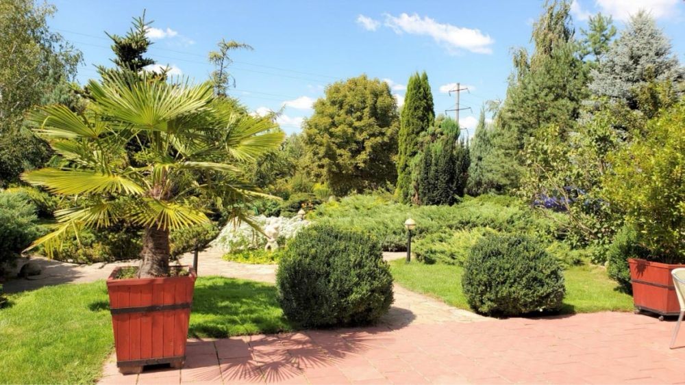 На ділянці: свій вихід до річки, причал, пляж, цілорічний басейн, домашній ресторан, тенісний корт, церква, дитячий майданчик, автомийка, будиночок охорони, гараж, сад, своя водойма, альтанка, барбекю, господарські будівлі, ландшафтний дизайн.